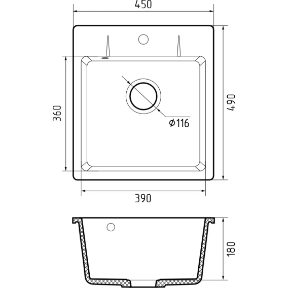 Кухонная мойка GranFest Urban 245 45x49 см, черный
