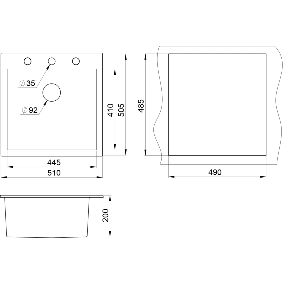 Намеченных отверстий для смесителя