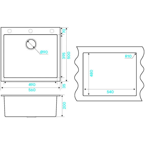 Кухонная мойка KuchenStern a-Granit Oben 60 204BL20 56x50 см, черный