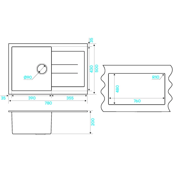 Кухонная мойка KuchenStern a-Granit Plat 50 206BL20 78x50 см, черный