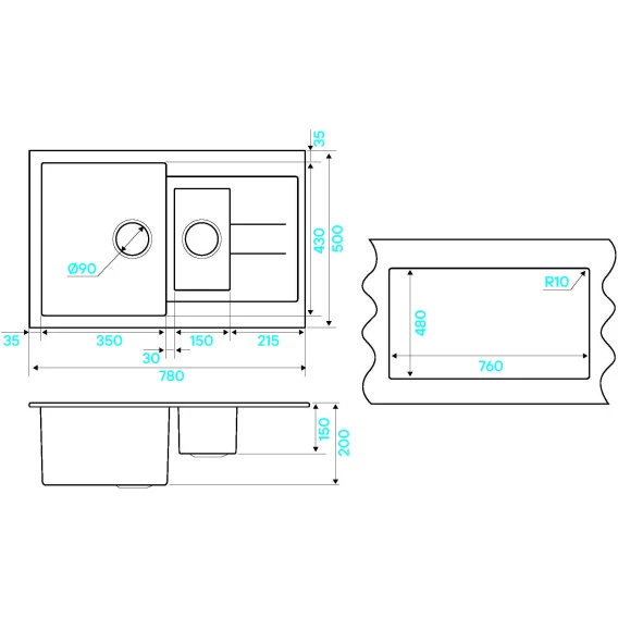 Кухонная мойка KuchenStern a-Granit Plat 50 206BL20 78x50 см, черный