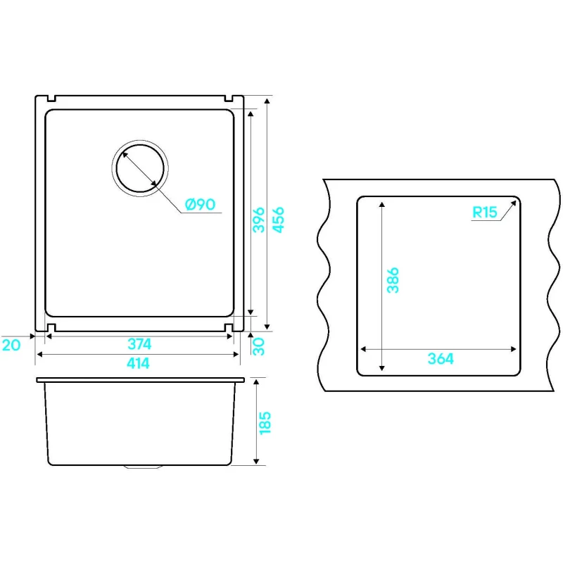 Кухонная мойка KuchenStern KeraPlus Subkeram 45 300KB30 41,4x45,6 см, черный