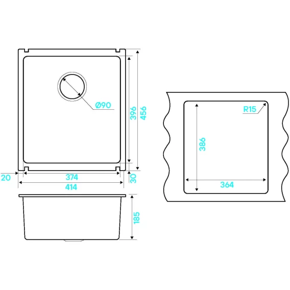 Кухонная мойка KuchenStern KeraPlus Subkeram 45 300KW30 41,4x45,6 см, белый