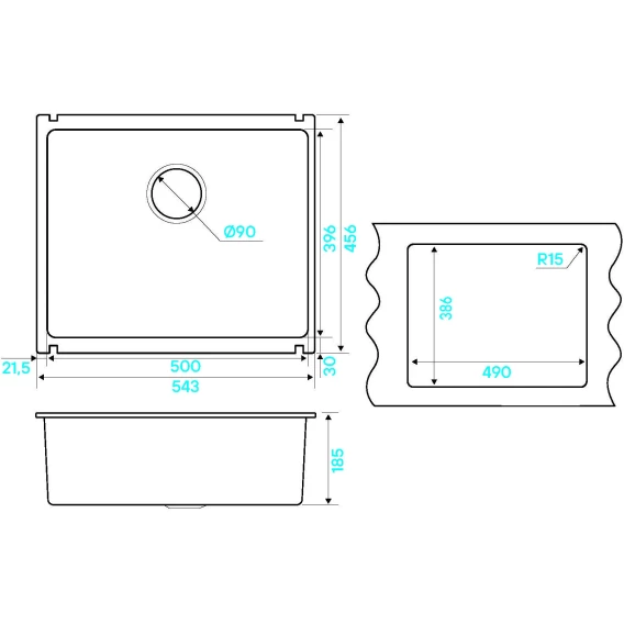Кухонная мойка KuchenStern KeraPlus Subkeram 60 301KB30 54,3x45,6 см, черный