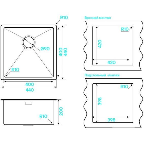 Кухонная мойка KuchenStern Kraft 45 500GM50 44x44 см, вороненая сталь
