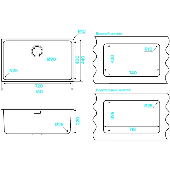 Встраиваемая сверху, Встраиваемая снизу, В один уровень со столешницей