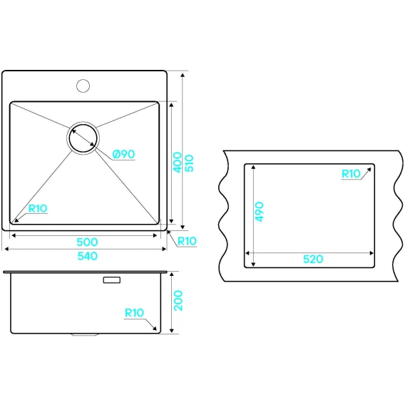 Кухонная мойка KuchenStern Werk 60 507SS50 54x51 см, нержавеющая сталь