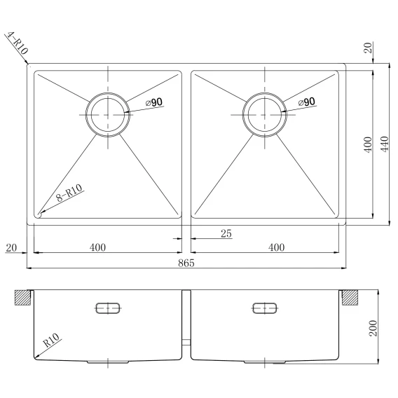 • Габариты чаши (ШхГ): 400х400 мм- 2 шт