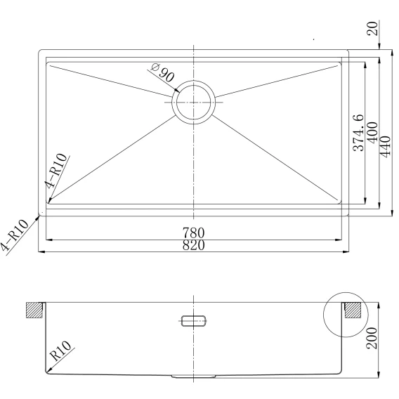 • Сливная арматура с выпуском 3 ½ (D-90мм) и сифон с возможностью подключения посудомоечной и стиральной машины