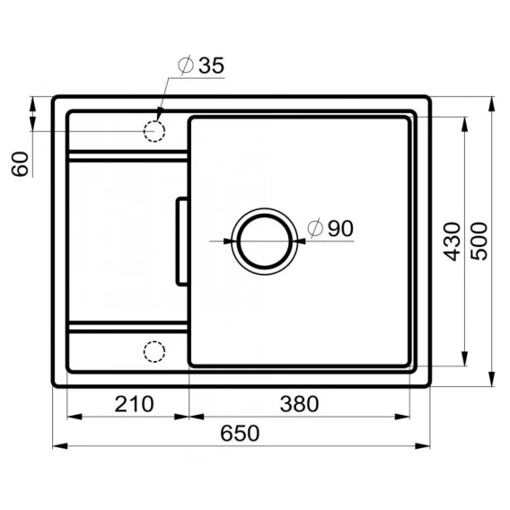 Намеченных отверстий для смесителя