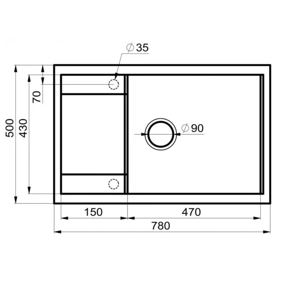 Намеченных отверстий для смесителя