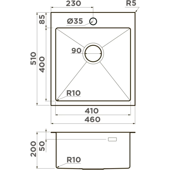 Кухонная мойка Omoikiri Akisame 46-IN 4973057 46x51 см, нержавеющая сталь