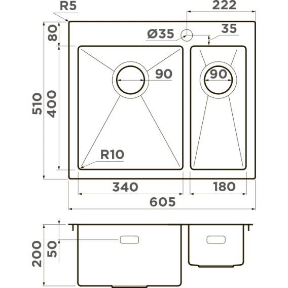 Кухонная мойка Omoikiri Akisame 60-2-IN-L 4993775 60,5x51 см, нержавеющая сталь