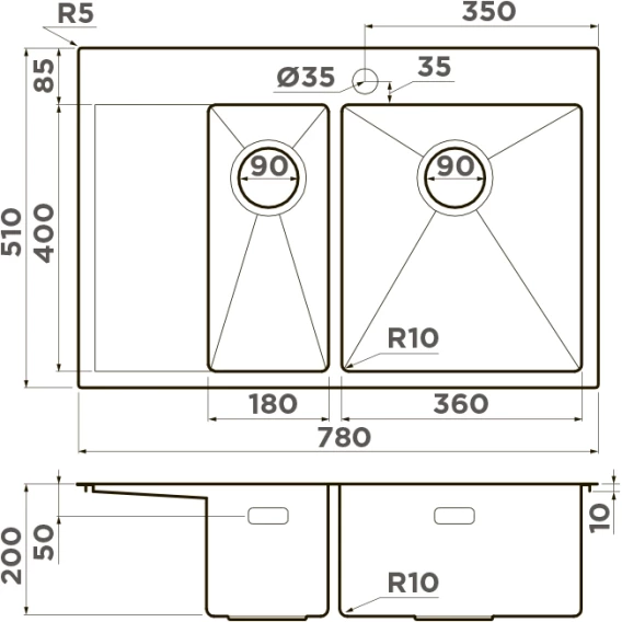Кухонная мойка Omoikiri Akisame 78-2-LG-R 4973088 78x51 см, светлое золото