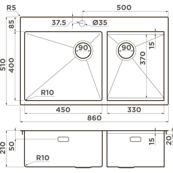 Кухонная мойка Omoikiri Akisame 86-2 Side-IN 4997021 86x51 см, нержавеющая сталь