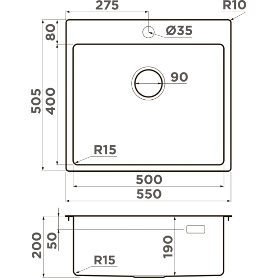 Кухонная мойка Omoikiri Amadare 55-IN 4993718 55x50,5 см, нержавеющая сталь