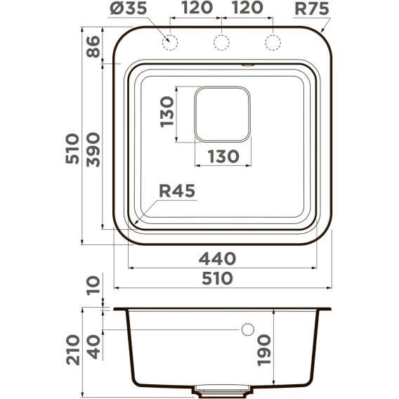 Кухонная мойка Omoikiri Artgranit Tasogare 51-GR 4993740 51x51 см, ленинградский серый