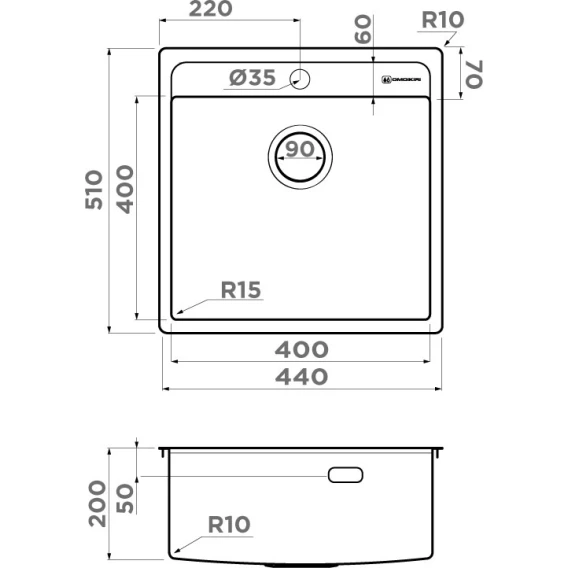 Кухонная мойка Omoikiri Daisen 44-IN 4993179 44x51 см, нержавеющая сталь