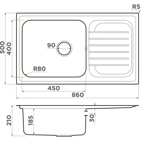 Кухонная мойка Omoikiri Haruna 86-IN 4993451 86x50 см, нержавеющая сталь