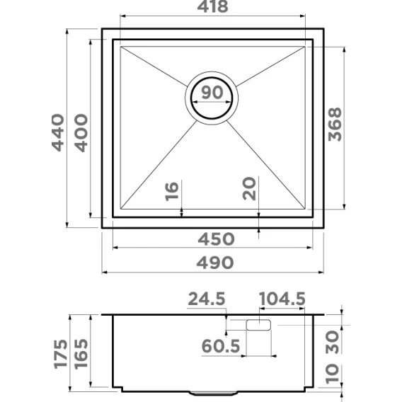 Кухонная мойка Omoikiri Omi 44-U/I Quadro IN 4993494 44,5x44,5 см, нержавеющая сталь