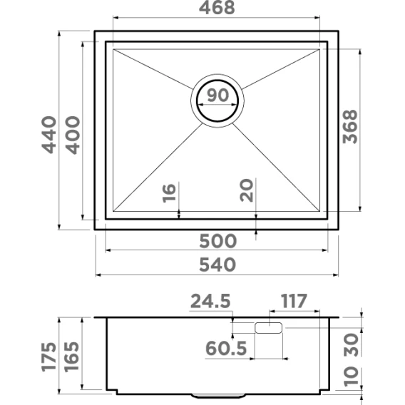 Кухонная мойка Omoikiri Kasen 54-16-INT-IN 4997059 54x44 см, нержавеющая сталь