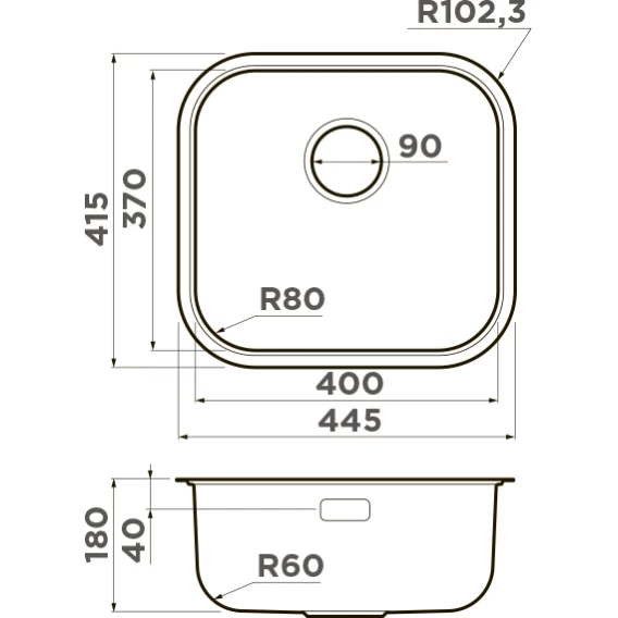 Кухонная мойка Omoikiri Omi 44-U/I-IN 4993189 44,5x41,5 см, нержавеющая сталь