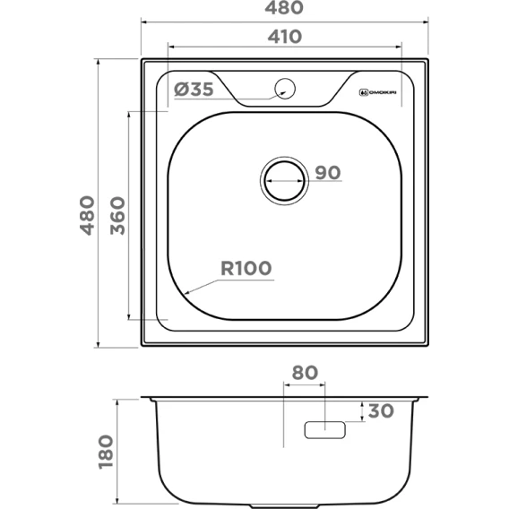 Кухонная мойка Omoikiri Saru 48-IN 4993833 48x48 см, нержавеющая сталь