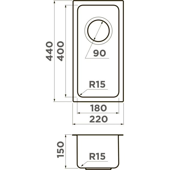 Кухонная мойка Omoikiri Tadzava 22-U/I-IN Ultra 15 4997112 22x44 см, нержавеющая сталь