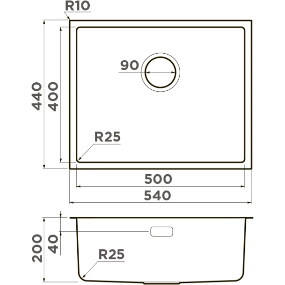 Кухонная мойка Omoikiri Omi 44-U/I Quadro IN 4993494 44,5x44,5 см, нержавеющая сталь