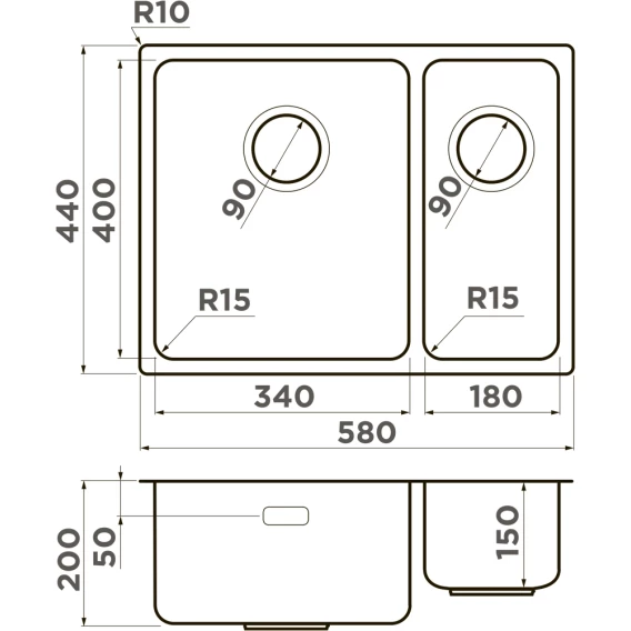 Кухонная мойка Omoikiri Tadzava 58-2-U/I-IN-L Ultra 15 4997118 58x44 см, нержавеющая сталь