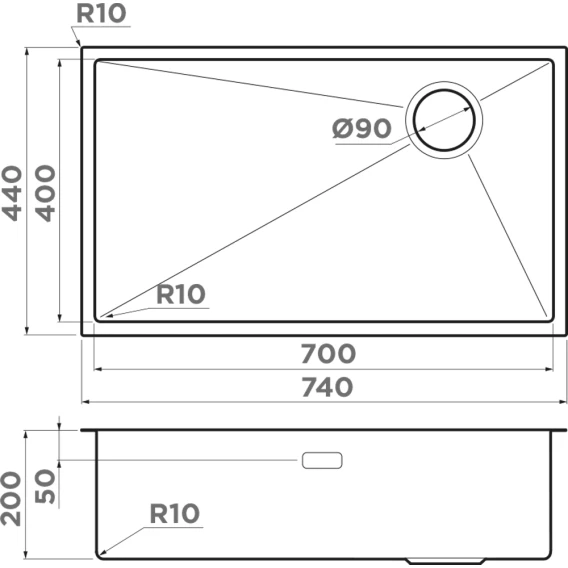 Кухонная мойка Omoikiri Taki 74-U/IF-GB Side 4993172 74x44 см, графит