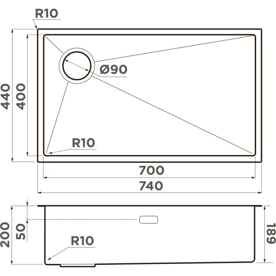 Кухонная мойка Omoikiri Taki 74-U/IF-IN Side-L 4997471 74x44 см, нержавеющая сталь