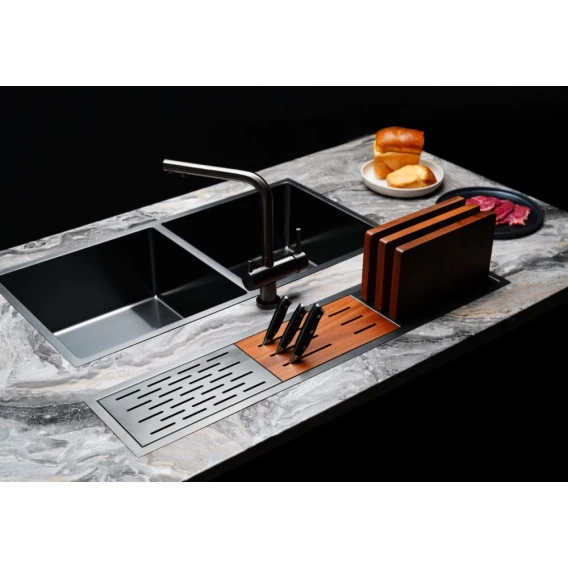 Кухонная мойка Omoikiri Taki 86-2-U/IF-GM 4993793 86,5x44 см, вороненая сталь
