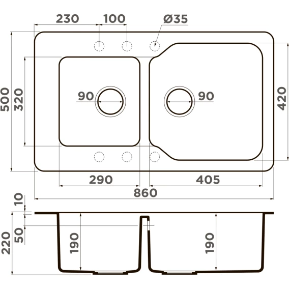 Кухонная мойка Omoikiri Tetogranit Maru 86-2-CH 4993291 86x50 см, шампань