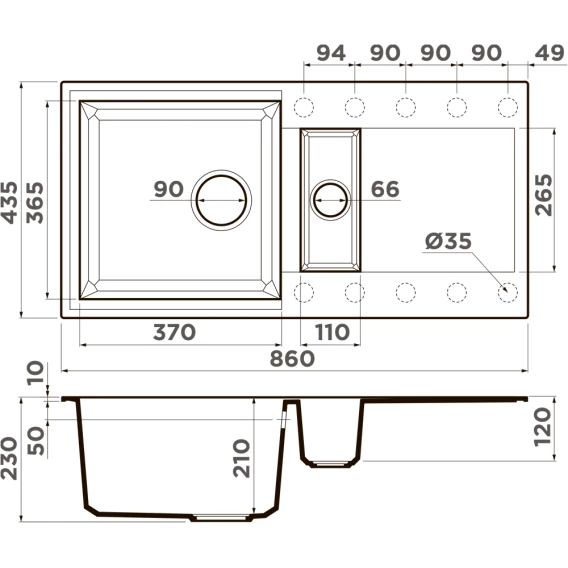 Кухонная мойка Omoikiri Tetogranit Sakaime 86-2-PL 4993203 86x43,5 см, платина