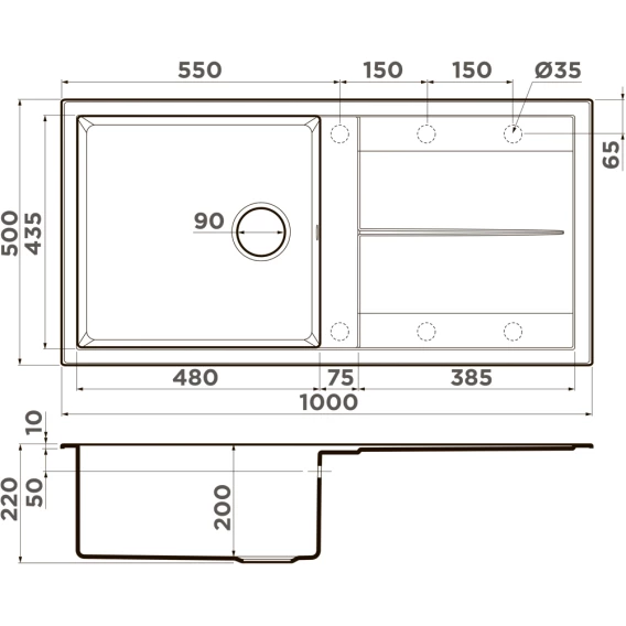 Готовых отверстий для смесителя