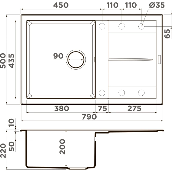 Кухонная мойка Omoikiri Tetogranit Sumi 79-SA 4993664 79x50 см, бежевый