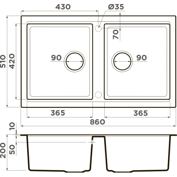 Кухонная мойка Omoikiri Tetogranit Tedori 86-2-BL 4993924 86x51 см, черный