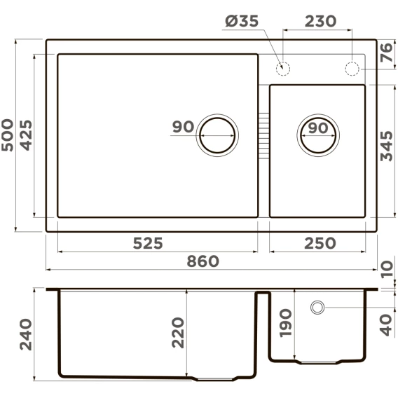 Кухонная мойка Omoikiri Tetogranit Tedori 86-2-LB-ES 4997242 86x50 см, эспрессо