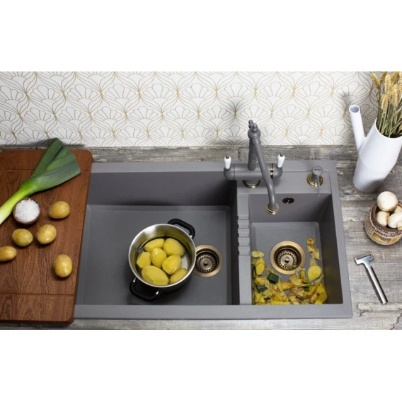 Кухонная мойка Omoikiri Tetogranit Tedori 86-2-LB-PL 4993939 86x50 см, платина