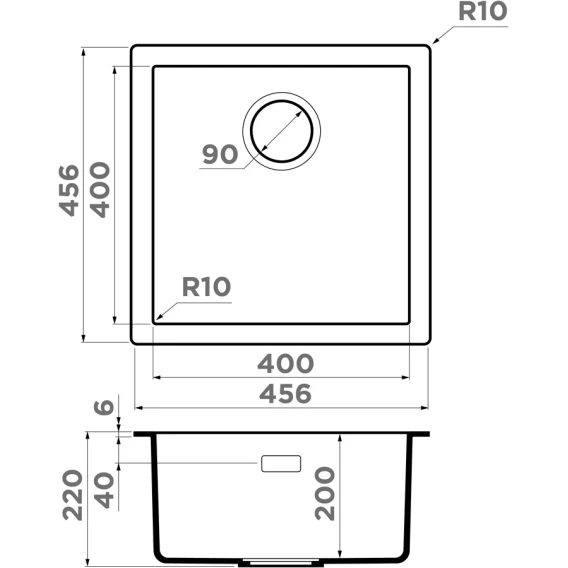 Кухонная мойка Omoikiri Tetogranit Yamakawa 45T-U/I-BL 4993302 45,6x45,6 см, черный