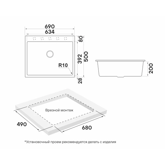 Кухонная мойка Paulmark Acrystone Decoration Urban grey PM936950-UGR 69x50 см, серый