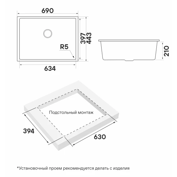 Кухонная мойка Paulmark Acrystone Neo Classic Urban grey PM966944-UGR 69x44,3 см, серый