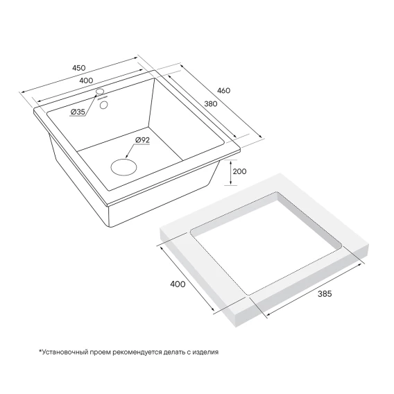 Глубина 46 см