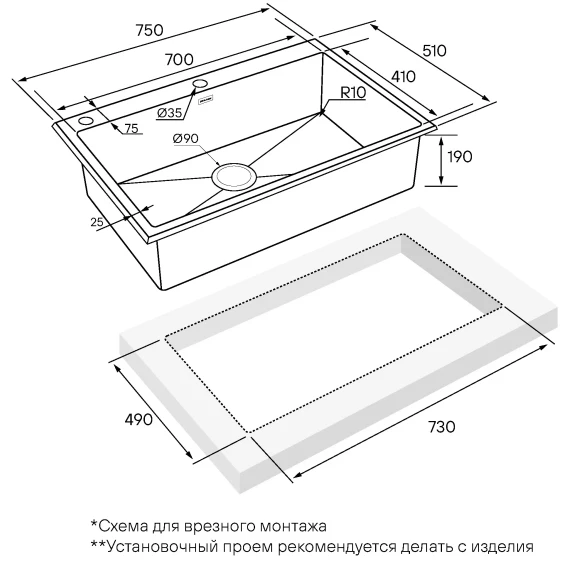 Намеченных отверстий для смесителя