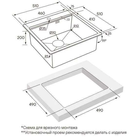 Кухонная мойка Paulmark Kroner-Pro PM705151-BG 51x51 см, золотой матовый