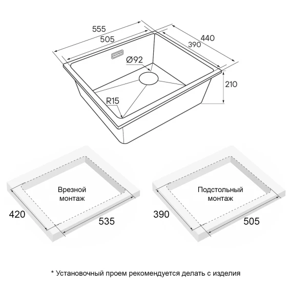 Кухонная мойка Omoikiri Taki 44-U/IF-IN 4973044 44x44 см, нержавеющая сталь