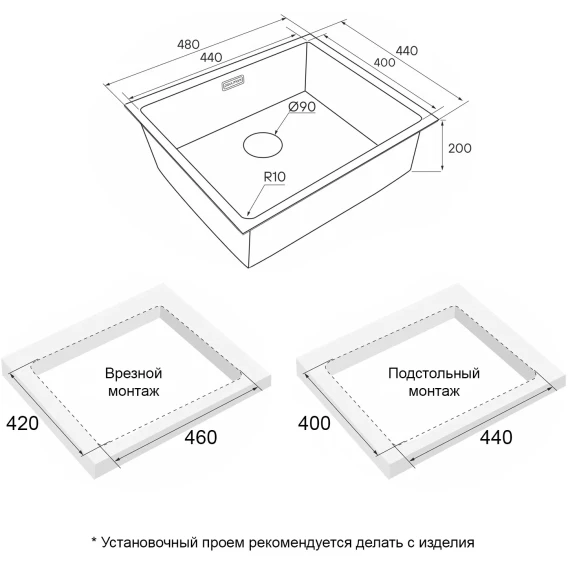 Встраиваемая сверху, Встраиваемая снизу, В один уровень со столешницей