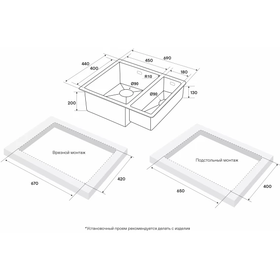 Кухонная мойка Paulmark Next PM226944-GML 69x44 см, вороненая сталь