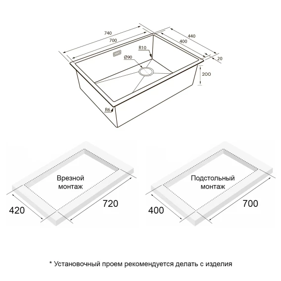 Кухонная мойка Paulmark Next-Skew PM887444-MBN 74x44 см, черный матовый